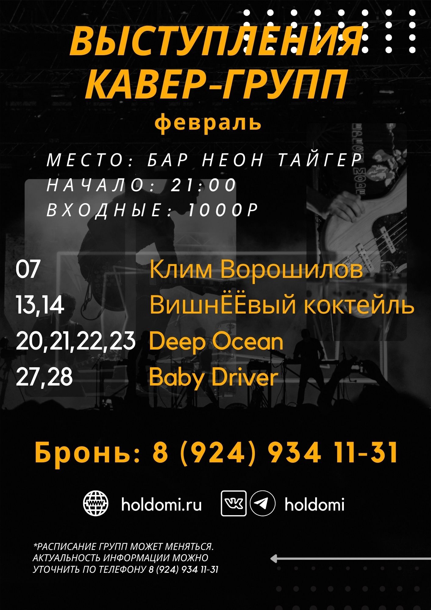 Выступление групп на февраль в баре "Неон Тайгер"